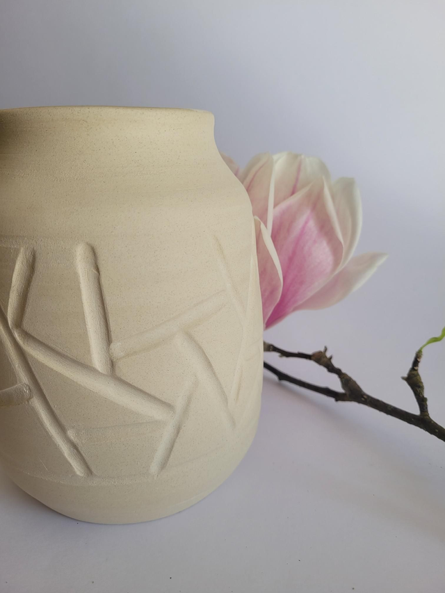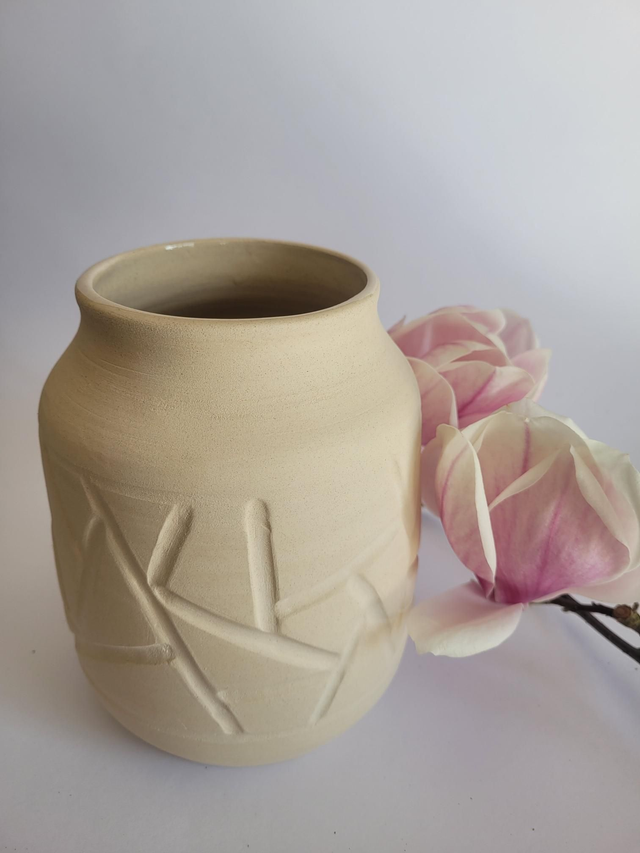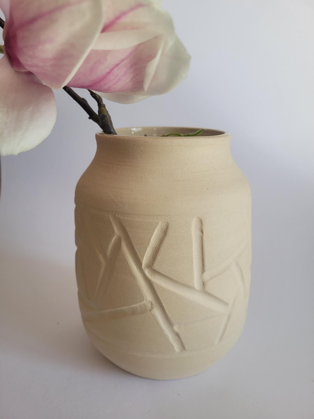 Vase en grès brut extérieur et émaillées transparent à l'intérieur pour pouvoir recevoir de l'eau pour les fleurs.