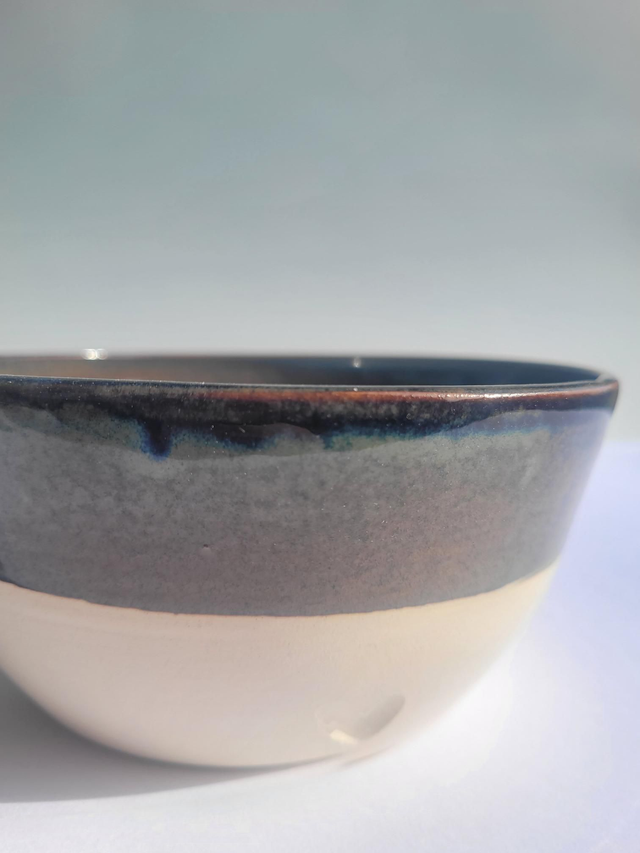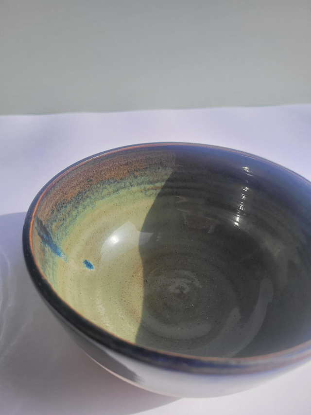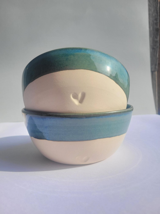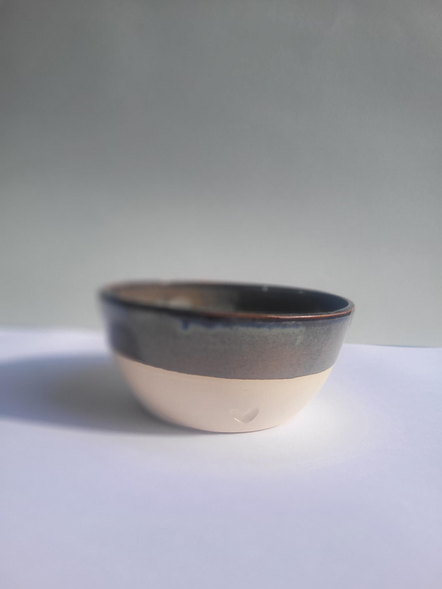 Bol en grès, émaillé intérieur et en partie haute extérieure avec petit coeur gravé.