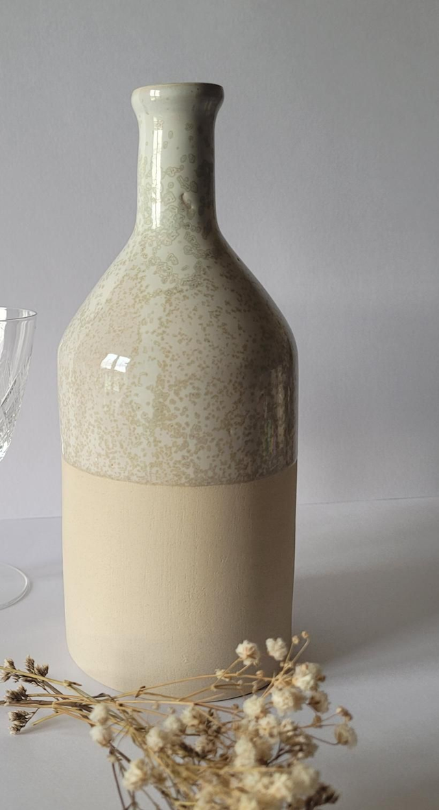 Bouteille en grès, émaillée jusqu' à mi hauteur.