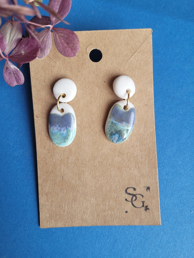 Boucles d oreilles en porcelaine blanche entièrement faites à la main.