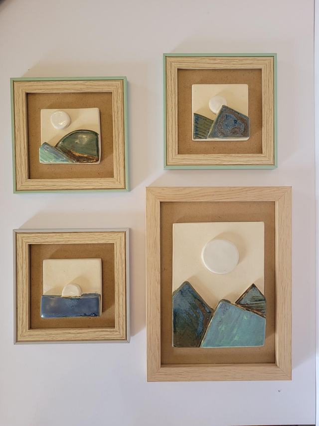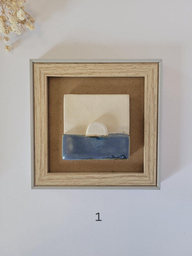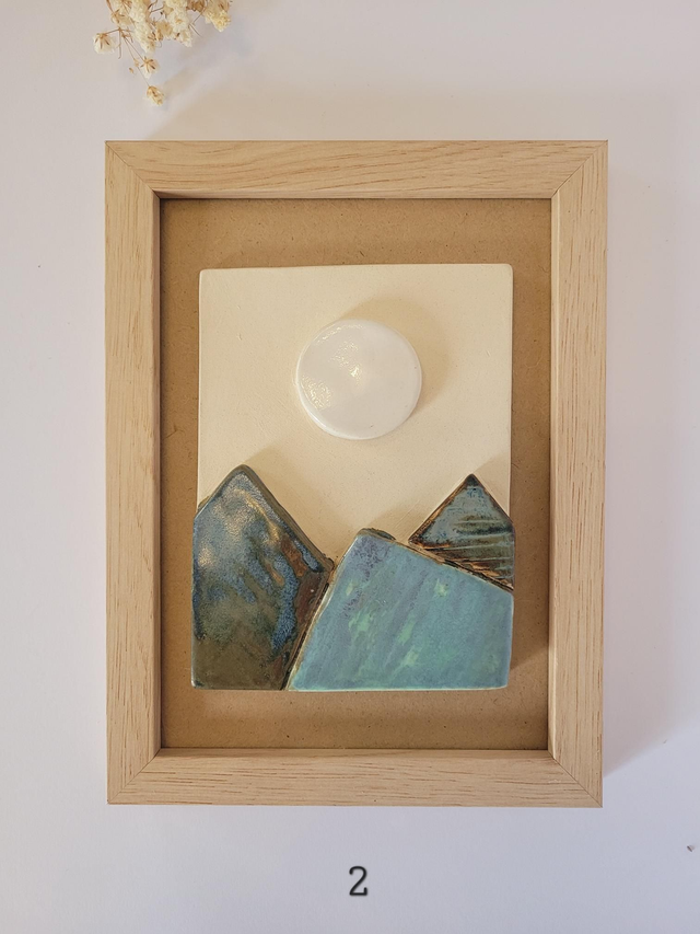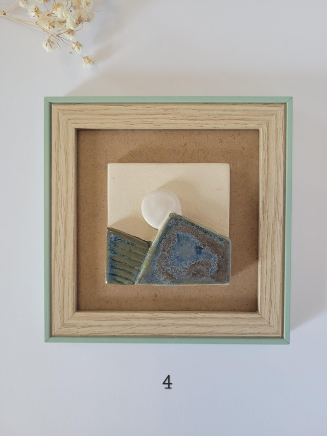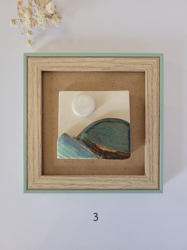 Cadre avec paysage en céramique, émaillé avec diverses couleurs.