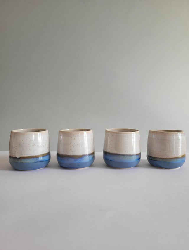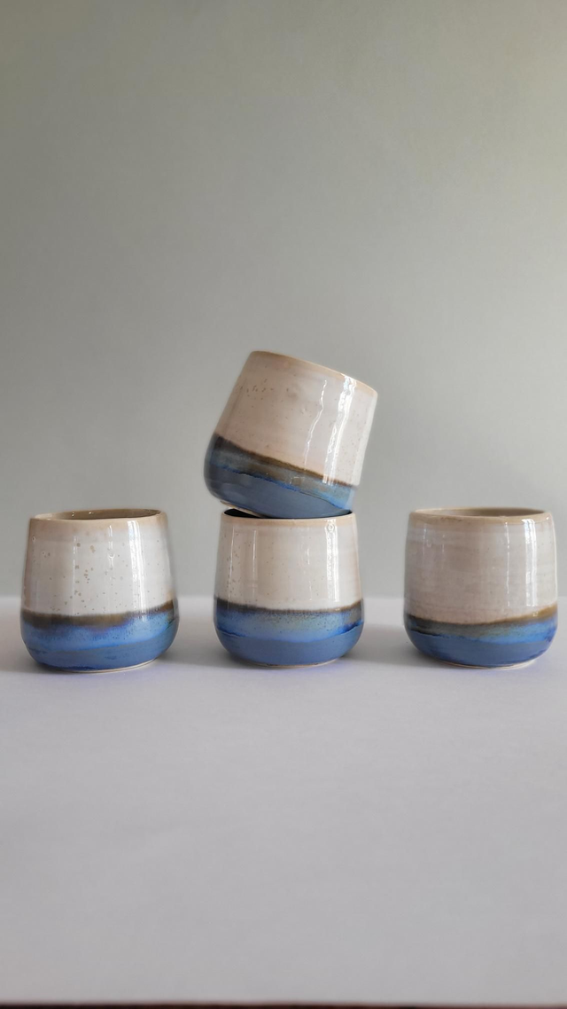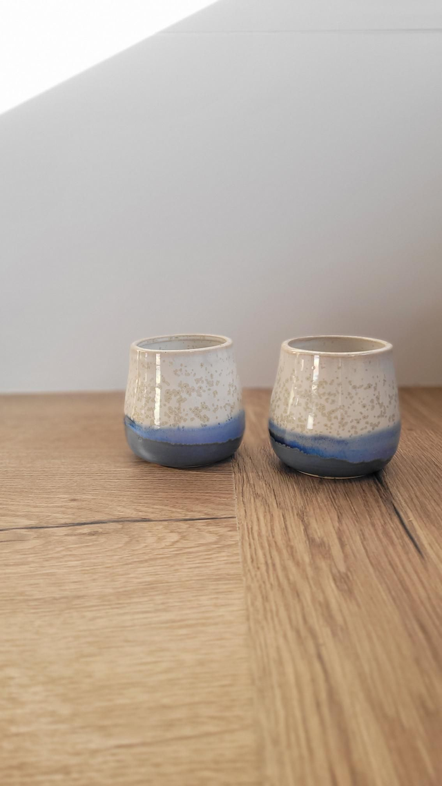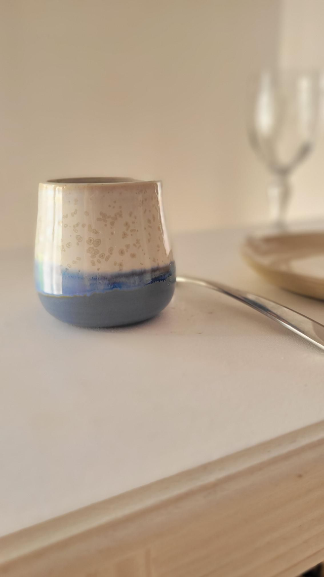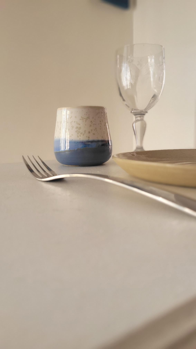 Tasse bicolore ou verre si vous voulez apporter un peu de couleur à votre table, bleu et blanc en grès émaillé.